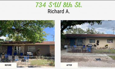 Rebuilding Together’ Neighborhood Rebuild approach targets multiple qualified homes in need of repairs and rehabilitation located close together and the repair services on two to four houses on a single day. Repairs for all the homes include exterior pressure washing, minor repairs of facia board/cracks, complete exterior painting, and landscaping. For each project, Rebuilding Together recruits skilled labor, materials, and volunteers at a discounted rate or no cost, and the remaining costs incurred are funded by the CRA